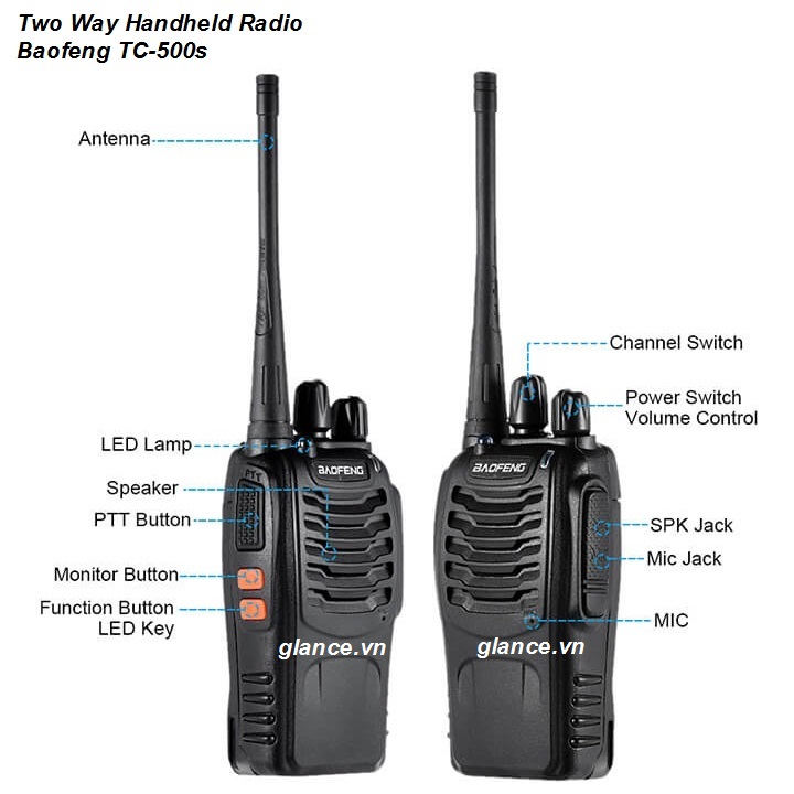 Máy bộ đàm Baofeng TC-500S được thiết kế nhỏ gọn, trọng lượng nhẹ, âm thanh lớn, sử dụng rất phù hợp với môi trường khách sạn, nhà hàng, karaoke, tổ chức sự kiện..., kích thước gọn nhẹ phù hợp với nhân viên nữ sử dụng, với nhiều tính năng nổi bật là trợ thủ đắc lực trong công việc