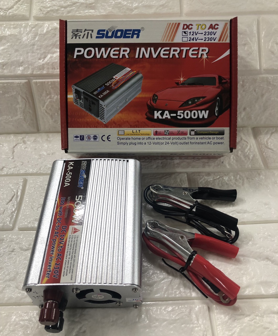 – Máy đổi điện Suoer KA-500W (thường được gọi là bộ kích điện) dùng để biến đổi điện áp từ acquy (điện áp DC) thành điện áp AC dùng cho thiết bị điện dân dụng khi bị mất điện lưới.
