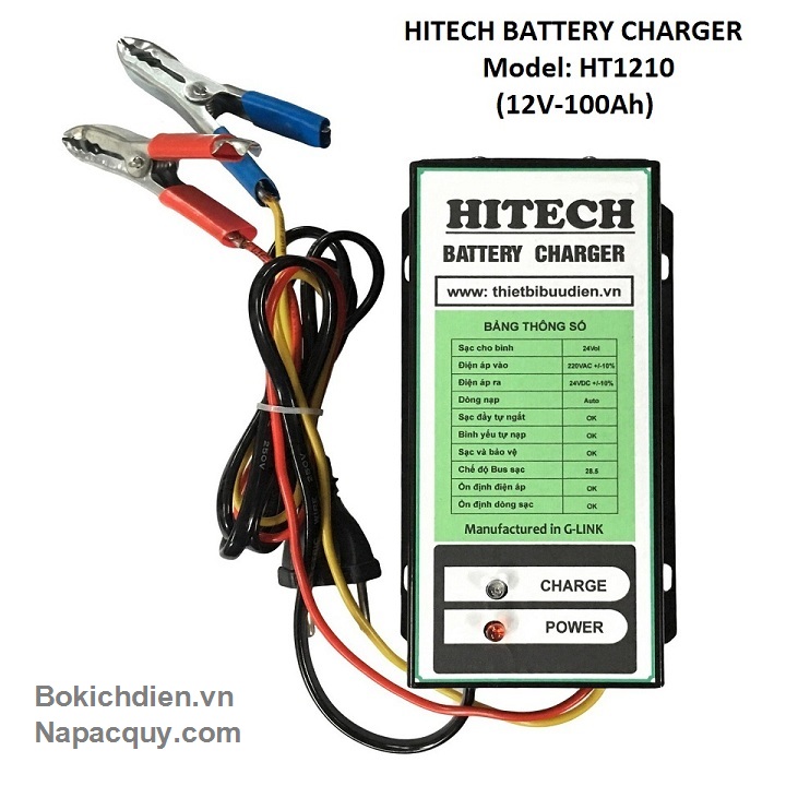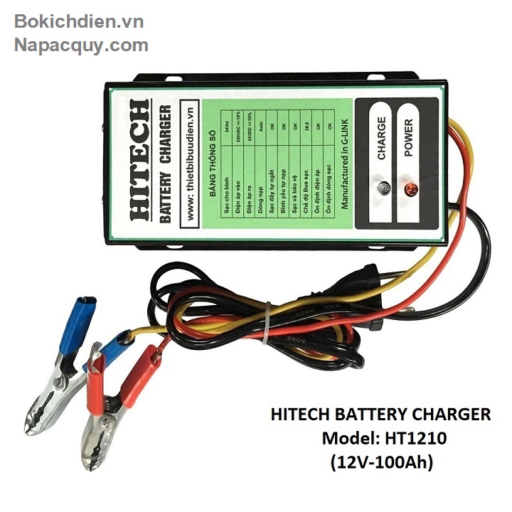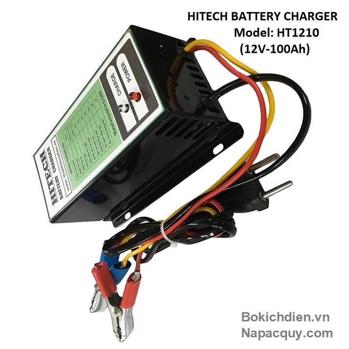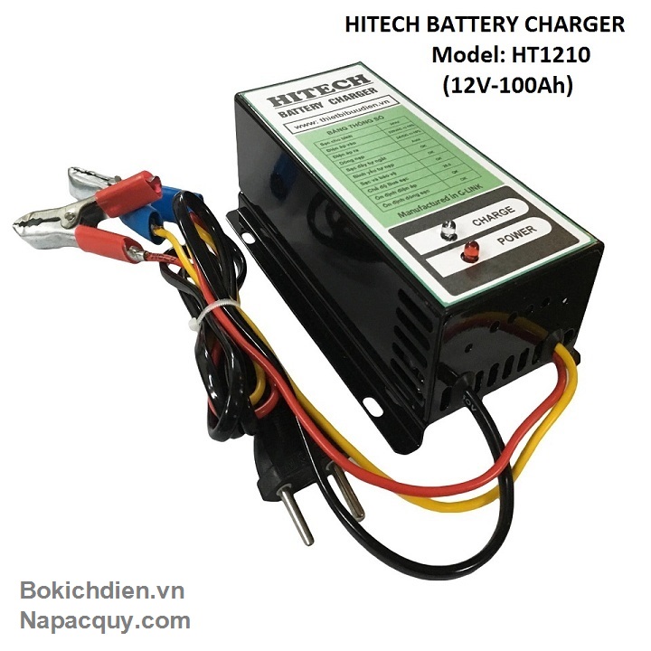 - Máy sạc ắc quy tự động 3 chế độ HITECH Là thiết bị sử dụng để nạp điện cho bình ắc quy khô hoặc ắc quy nước có dung lượng từ 10Ah đến 100Ah. Với dòng sạc tương ứng với ắc quy. Sử dụng nguồn biến áp cao tần cho hiệu xuất cao lên đến 93%. Ổn định dòng sạc trong suốt quá trình sạc ắc quy.