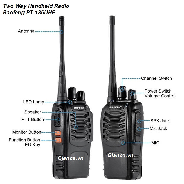 Máy bộ đàm Baofeng PT186 được thiết kế nhỏ gọn, trọng lượng nhẹ, âm thanh lớn, sử dụng rất phù hợp với môi trường khách sạn, nhà hàng, karaoke, tổ chức sự kiện..., kích thước gọn nhẹ phù hợp với nhân viên nữ sử dụng, với nhiều tính năng nổi bật là trợ thủ đắc lực trong công việc