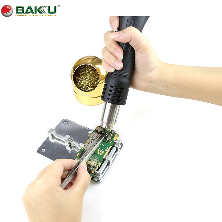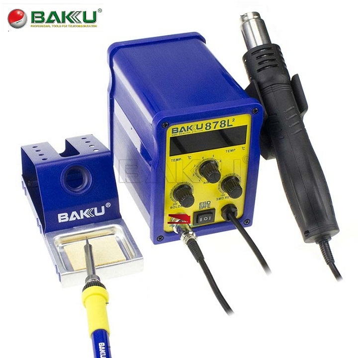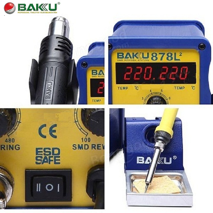 1. Máy khò và hàn BAKU-878L được thiết kế gọn gàng. BAKU-878L nhìn rất chắc chắn, khỏe khoắn không chỉ phù hợp với môi trường sửa chữa và nhà xưởng mà còn rất thích hợp với việc đặt tại từ cửa hiệu lớn cho tới cửa hàng nhỏ