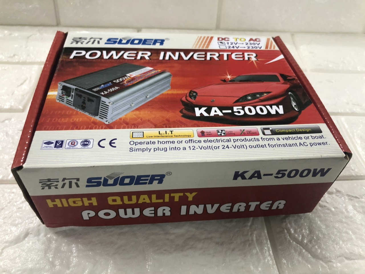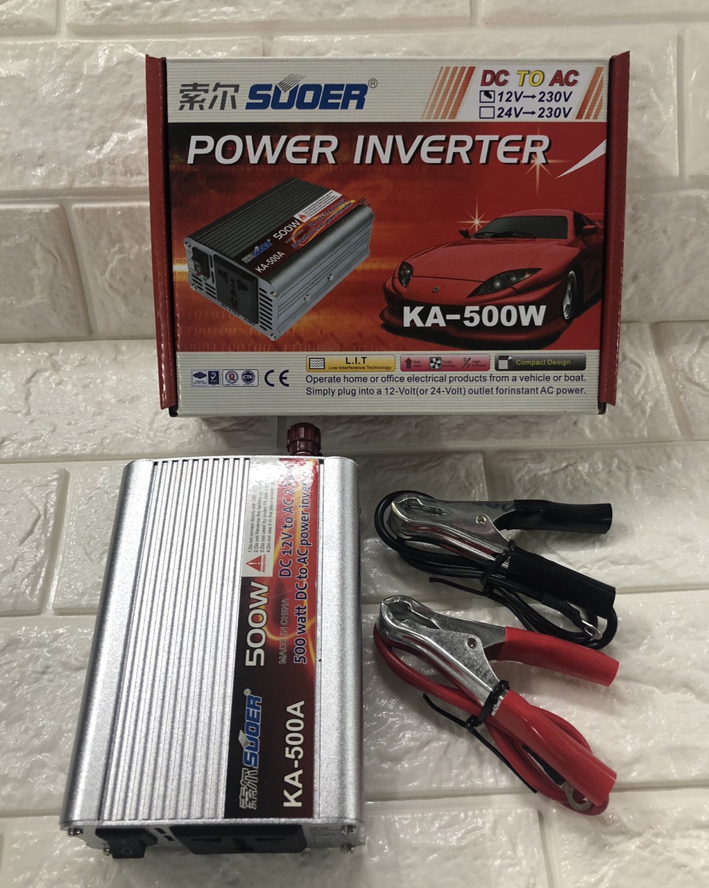 – Máy đổi điện Suoer KA-500W (thường được gọi là bộ kích điện) dùng để biến đổi điện áp từ acquy (điện áp DC) thành điện áp AC dùng cho thiết bị điện dân dụng khi bị mất điện lưới.