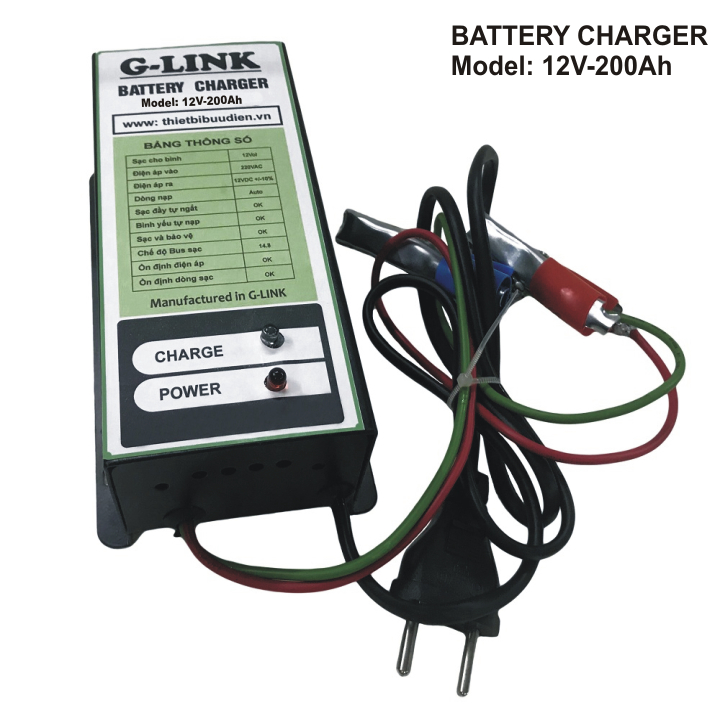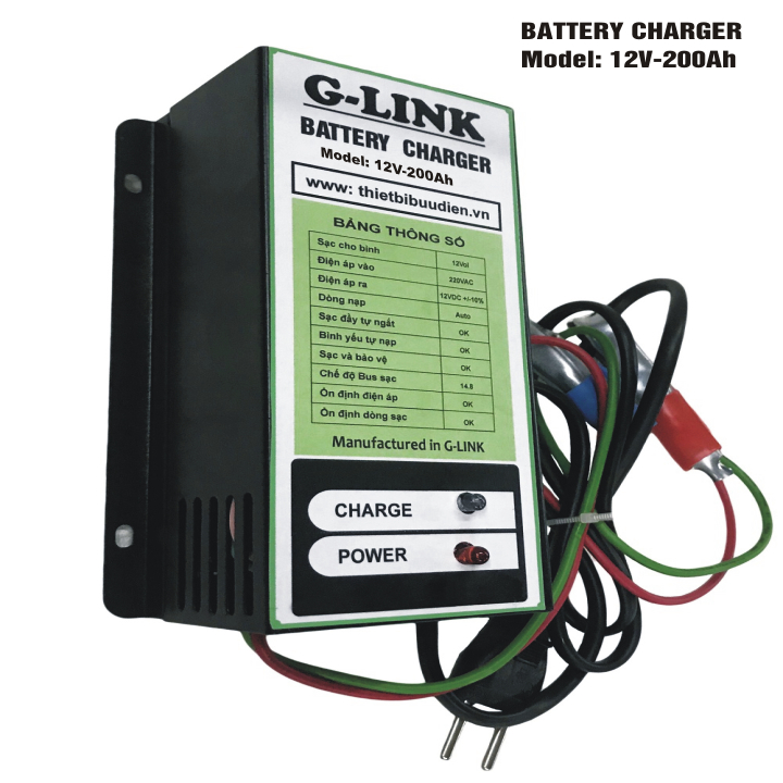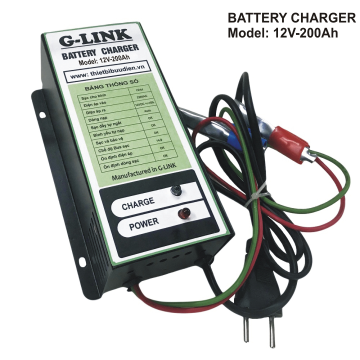 Máy Sạc ắc quy tự động G-LINK G12V-200Ah tự động ngắt khi bình ắc quy đã đầy điện, bảo vệ, kéo dài tuổi thọ cho bình ắc quy, phòng chống chập, cháy, nổ. Giảm thiểu nhân công vận hành trông coi trong quá trình sạc ắc quy