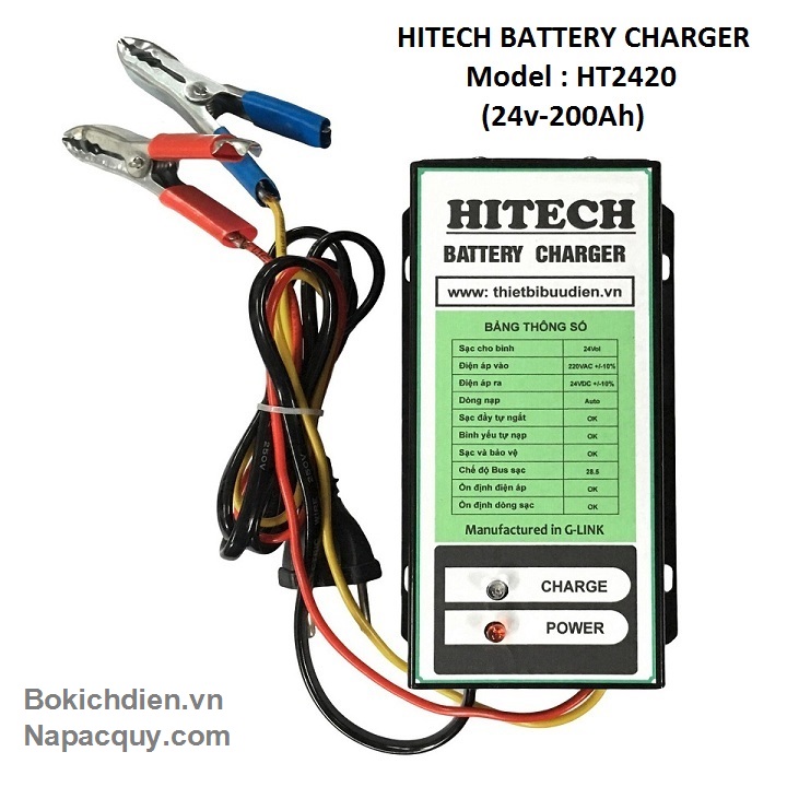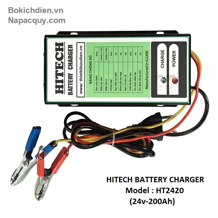 - Máy sạc ắc quy tự động 3 chế độ HITECH Là thiết bị sử dụng để nạp điện cho bình ắc quy khô hoặc ắc quy nước có dung lượng từ 10Ah đến 100Ah. Với dòng sạc tương ứng với ắc quy. Sử dụng nguồn biến áp cao tần cho hiệu xuất cao lên đến 93%. Ổn định dòng sạc trong suốt quá trình sạc ắc quy.